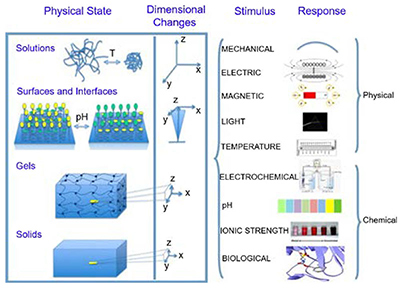 The overall challenge of Thrust 2 is to develop new generations of dynamic materials that can respond and adapt to external stimuli, leading to new knowledge and technological advances. Thrust 2 will develop sensing and self-healing polymeric materials that respond to environmental stimuli. These dynamic polymers will respond with macroscopic property changes resulting from chemical or physical structural reorganization including cleavage or restoration of chemical bonds, phase reorganization or conformational changes. Such advances will enable an array of applications, ranging from self-repairing polymers for structural applications, to new polymer-based sensors, to biomedical devices that release drugs or purify water. We will investigate stimuli important for applications such as thermal or electromagnetic radiation, environmental changes (solvent, pH, ionic strength, matrix), electrical or magnetic fields and mechanical stress.